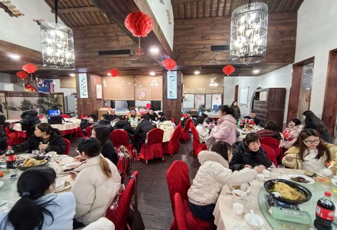 Ese día, todos los empleados trabajaron juntos para hacer bolas de masa. Colegas de diferentes posiciones y regiones se sentaron juntos, dividiéndose las tareas de forma natural y cooperando sin problemas, desde extender la masa y preparar el relleno hasta cocinar. Algunos tenían experiencia, mientras que otros lo intentaban por primera vez, pero la risa y la conversación inconscientemente acercaron a todos.